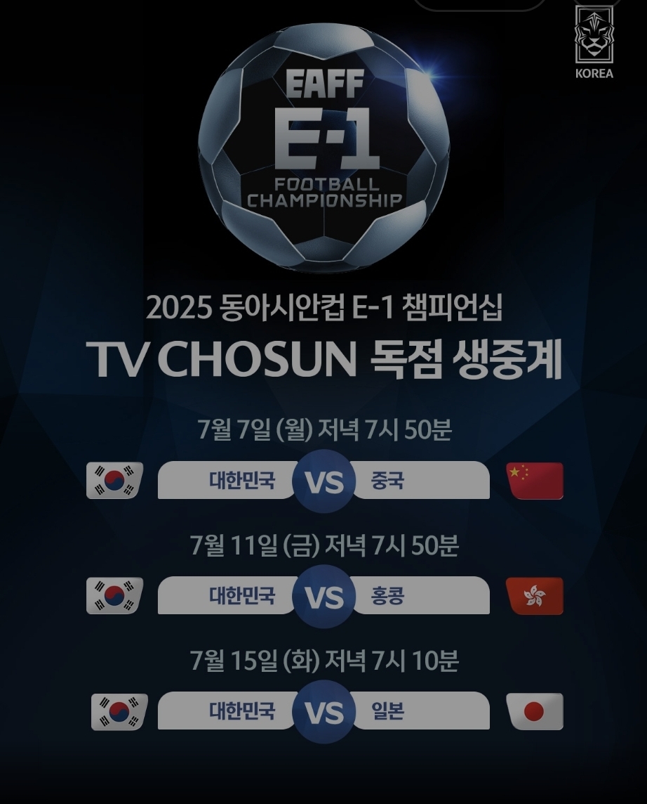 종합편성 채널인 TV조선에서도 이번 동아시안컵을 방송사에서는 독점으로 중계를 진행할 예정입니다.